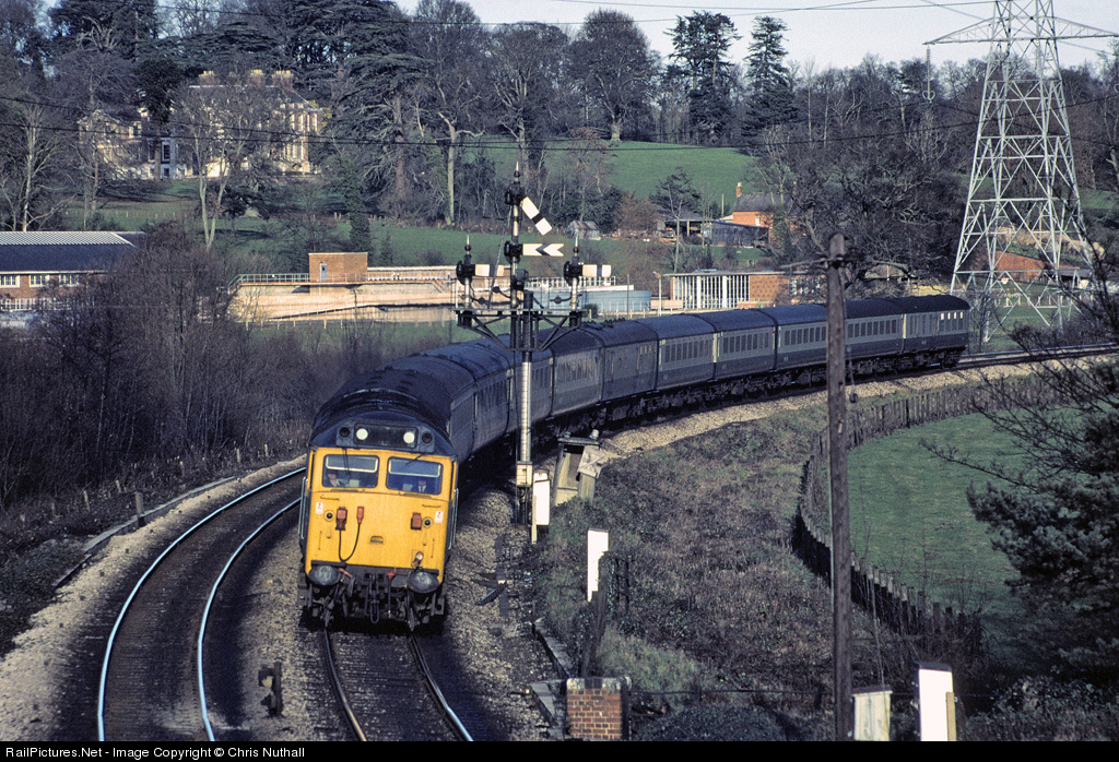Slowing for the timetable stop at Exeter St. Davids, 50021, Rodney, swings around the curve on the approach to Cowley Bridge Junction with a down Paddington service in December 1980. Unknown to the photographer at the time, within four months the subject would have changed to the D&RGW in Colorado!