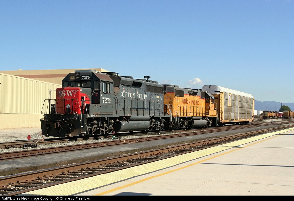 An extremely rare un-patched Cotton Belt unit leads the "Day Bud," aka LOF41 in switching GEMCO Yard. It was built a GP40 in August of 1971 as Western Pacific #3533. After the UP merger, it became UP #681, before being sold to the Chicago Missouri & Western Railway as their #3016. Upon retirement, it was rebuilt by Morrison-Knudson in November 1990 into a GP40M-2. It is slotted to become UP #1496.