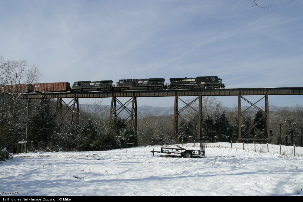 NS 16T rolls over the trestle at Compton, VA with Miss Juanita at the controls