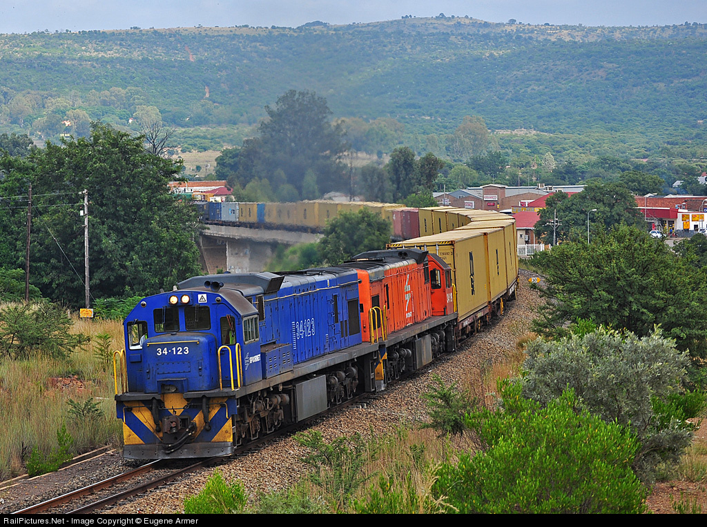 RailPictures.Net Photo: 34-123 & 34-019 Transnet Frieght Rail Class 34-000 (GE U26C) at Swartruggens, North West province, South Africa by Eugene Armer