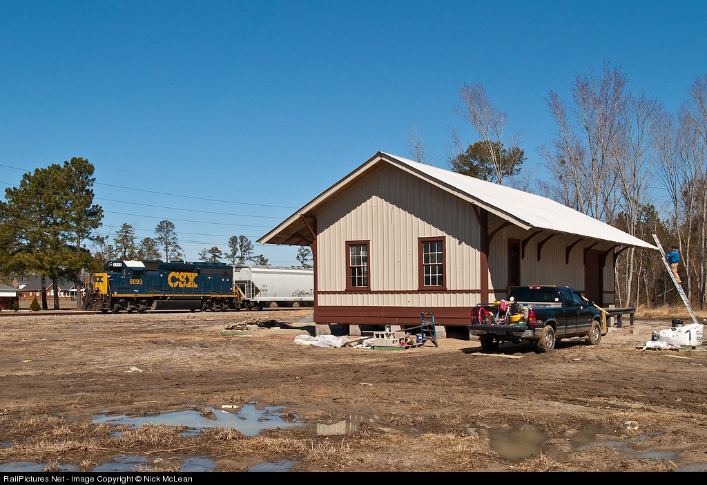 The local that serves the south end of the Parmele Sub passes a former ACl depot under restoration in Winterville. The depot was recently returned to the site and will be one of several nicely restored wooden depots in the area.