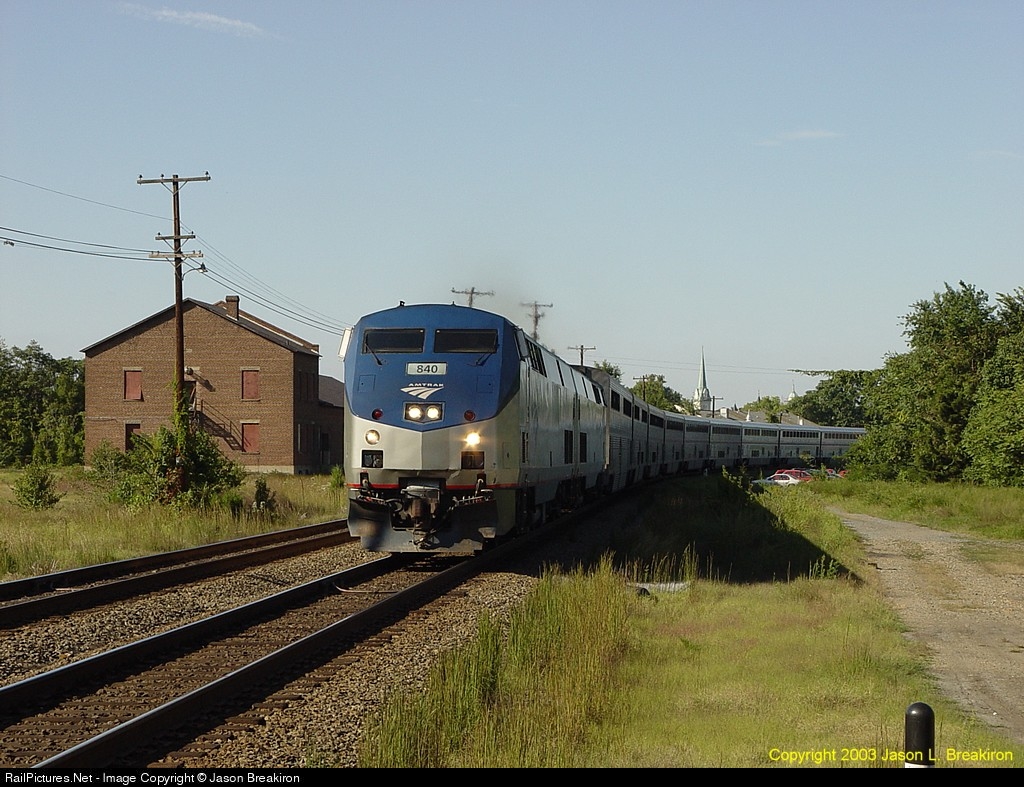 RailPictures.Net Photo: Amtrak 840 Amtrak GE P40DC at Fredericksburg, Virginia by Jason Breakiron