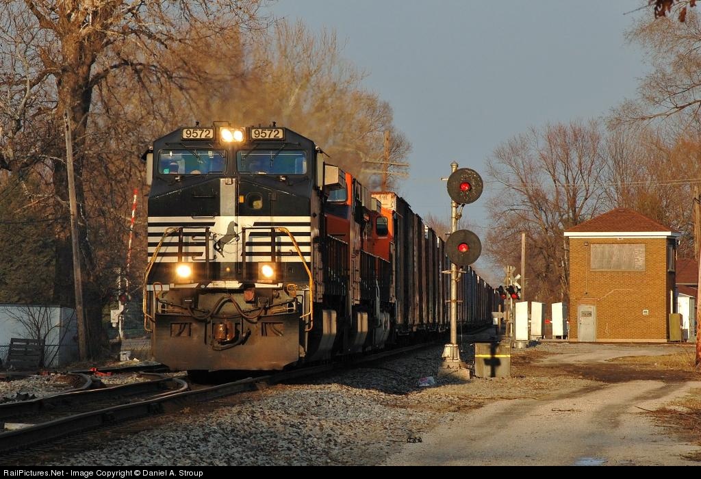 | NS #145 gets rolling again after a 20+ minute delay at the hands of the I&M operator controlling this interlocking. Dragging this auto parts-laden train over the diamond today are NS 9572 - BNSF 7438 - BNSF 4820. Foreign power is common again on the Springfield-Hannibal district. |