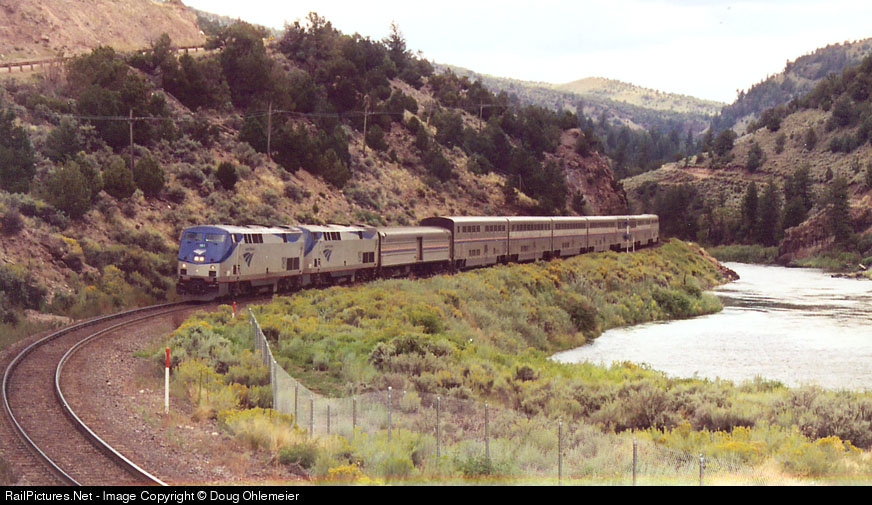 | Amtrak's California Zephyr on the Colorado River near Bond, Colo., between Kremmling, Colo., and Burns, Colo. |