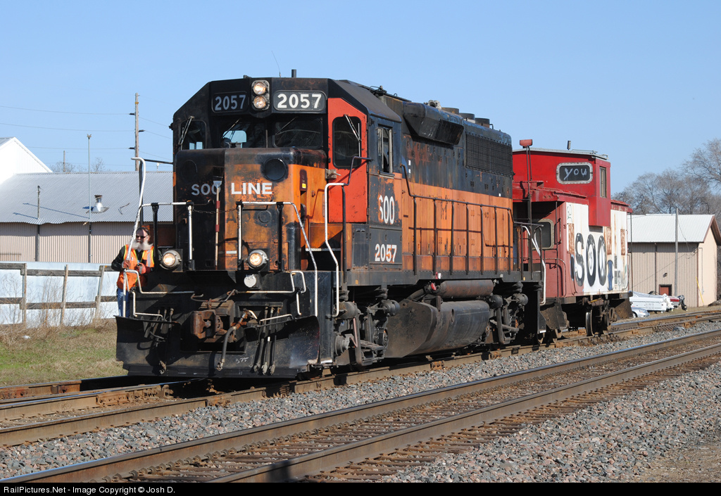 | After having a set of freshly repainted CP geeps on this job, I was extremely happy when I found out the jobs new power was a lone Bandit GP40. Here the 2057 is almost finished with the days work. What a sight to see, an ex Milwaukee Road GP40 and a Soo Line caboose! |