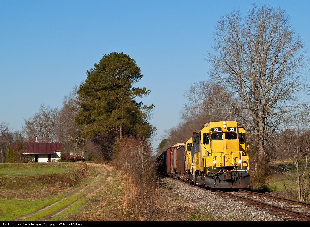 The ingredients for a great shortline day: perfect spring weather, tranquil country setting, and a GP30/35 lashup doing track speed down jointed rail. Not to mention the large cut of woodchip hoppers in this 23 car train make it one of the best smelling trains around. The woodship cars were picked up in Wilson, NC, and will be turned over to another CLNA train in Chocowinity for the rest of the trip to the mill at Plymouth, NC.