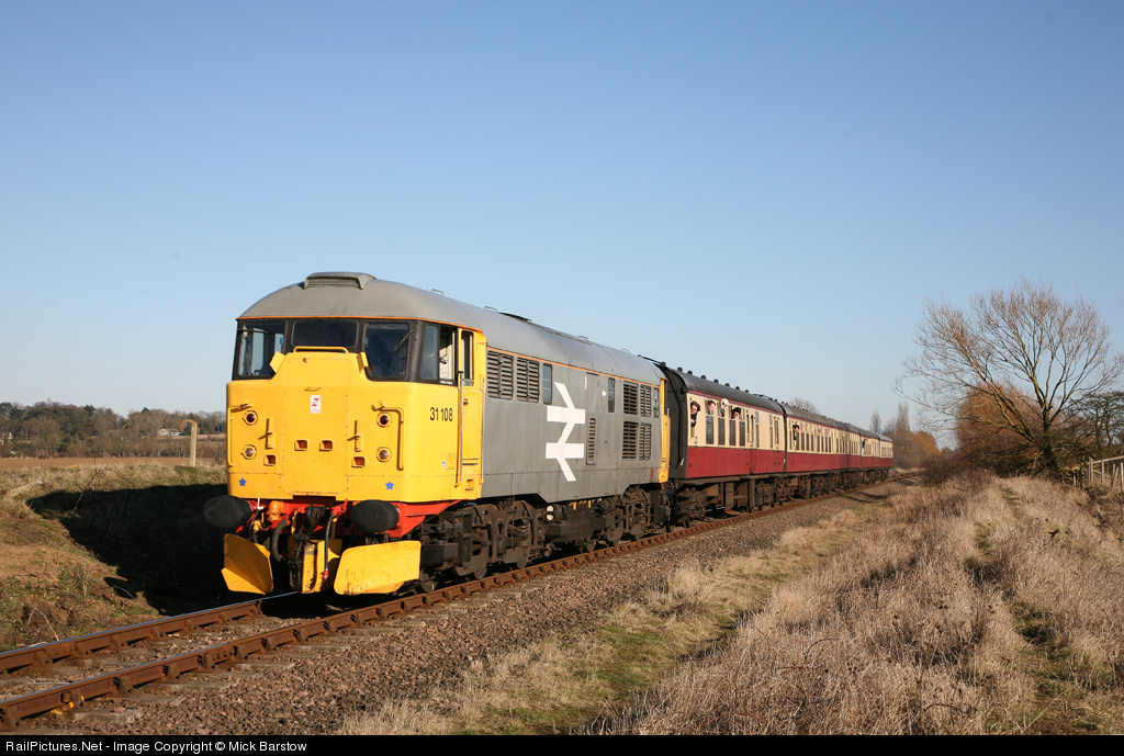 | Visiting Class 31, number 31108 is seen on the 1450 Peterborough NVR to Wansford during the Nene Valley Railway's spring diesel gala. |