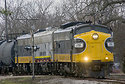 In an unusual Tuesday run west due to a derailment, te Peoria & Western's Canton Cannonball heads west towards a meet with the Keokuk Junction job out of LaHarpe on Tuesday afternoon.STEVE SMEDLEY PHOTO