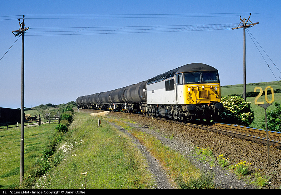 56063 heads back to the refinery at Lindsey on Humberside with a train of empty tanks from the Potash mine at Boulby.