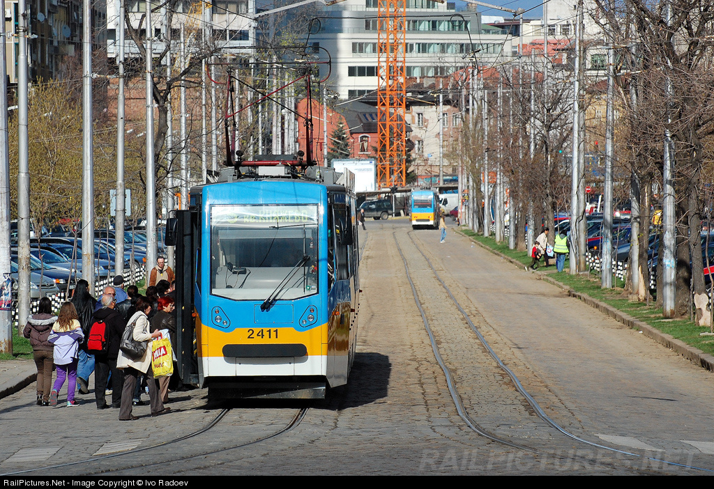 The same place, the same tram line, but a different tram. That are looking the new trams on line 5 in Sofia. |