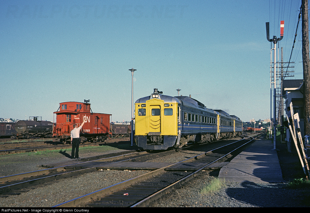 | Via train #601 with a trio of RDCs (Railiners on CN) makes a station stop at Rockingham, six miles from Halifax's Ocean Terminal. |