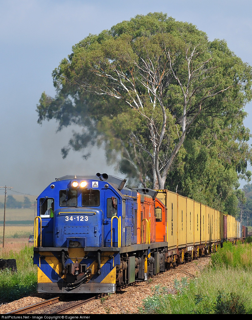 RailPictures.Net Photo: 34-123 & 34-019 Transnet Frieght Rail Class 34-000 (GE U26C) at Koster, North West province, South Africa by Eugene Armer