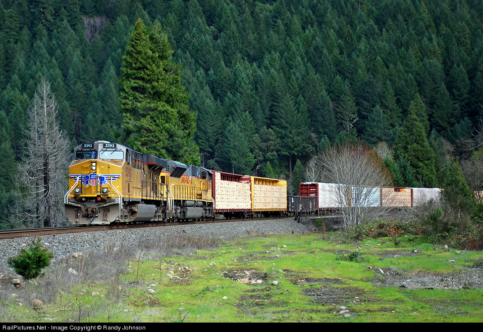 | UP 5392 pushes and shoves this tain thru the forest of western Oregon, on it's way up the Cascade Summit grade. |