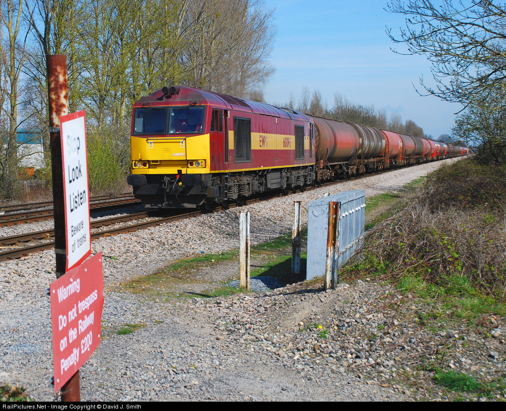 | A welcome return for a class 60 on the Robeston - Westerleigh tanks,which has been worked by a variety of power for the last couple of months.Here the train races over Naas Crossing,on the outskirts of Gloucester. |