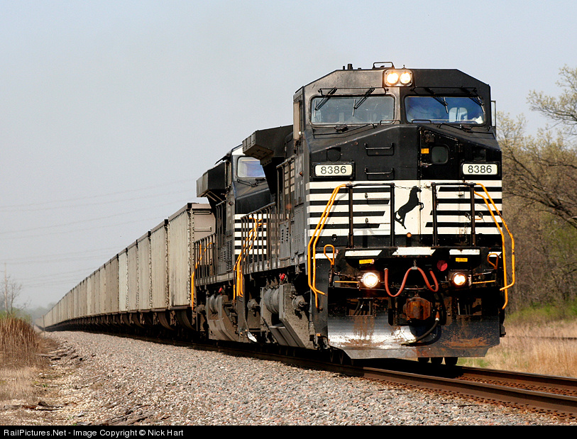 | This was neat. An NS C40-8W and an NS ES40DC lead a westbound coal train, consisting of all NS labeled cars, through Coal City, down the Transcon. |