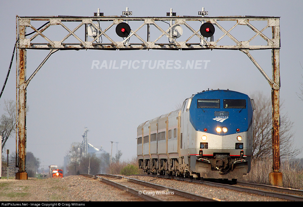 Amtrak's Illinois Zephyr is rounding up the MGALCHC west of Earlville. This train just made its station stop at Mendota around 10 miles ago and still has 75 miles to arrive at Union Station in Chicago, IL. Amtrak runs 2 pair of trains each day between Quincy, IL, and Chicago, IL, 2 Illinois Zephyr's, and 2 Carl Sandburg's.