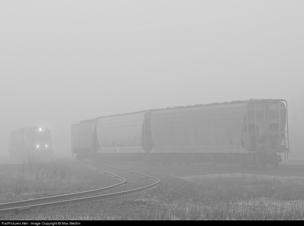 | Pea Soup fog blankets the harbors as the 0700 CP Duluth job appears out of nowhere like a ghost, and goes to retrieve the cars they left on the downhill grade. |