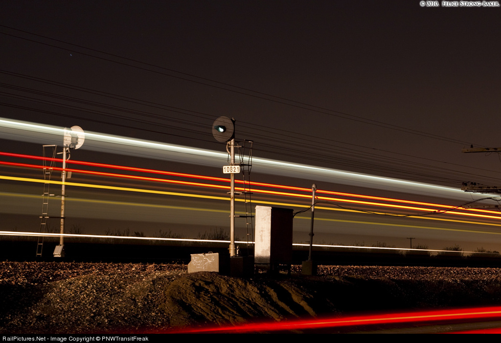 Hughson Sunday Nights: The peacefulness of Hughson, California is shattered for less than 40 seconds while a northbound Amtrak California San Joaquin train 718. CDTX 2051, whose earned the nickname 'Sluggo', on account of its slow loading times, is pulling this trainset at a brisk 79mph rushing northward to Oakland at the other end of this corridor.