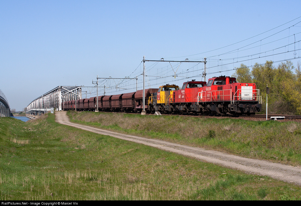 | Engines 6431, 6499 and 6435 in front of an ore train from Rotterdam to Dillingen. In the near future these trains will not pass this bridge anymore, but redirected over the new railroad from Rotterdam to Germany, the "BetuweLine". |