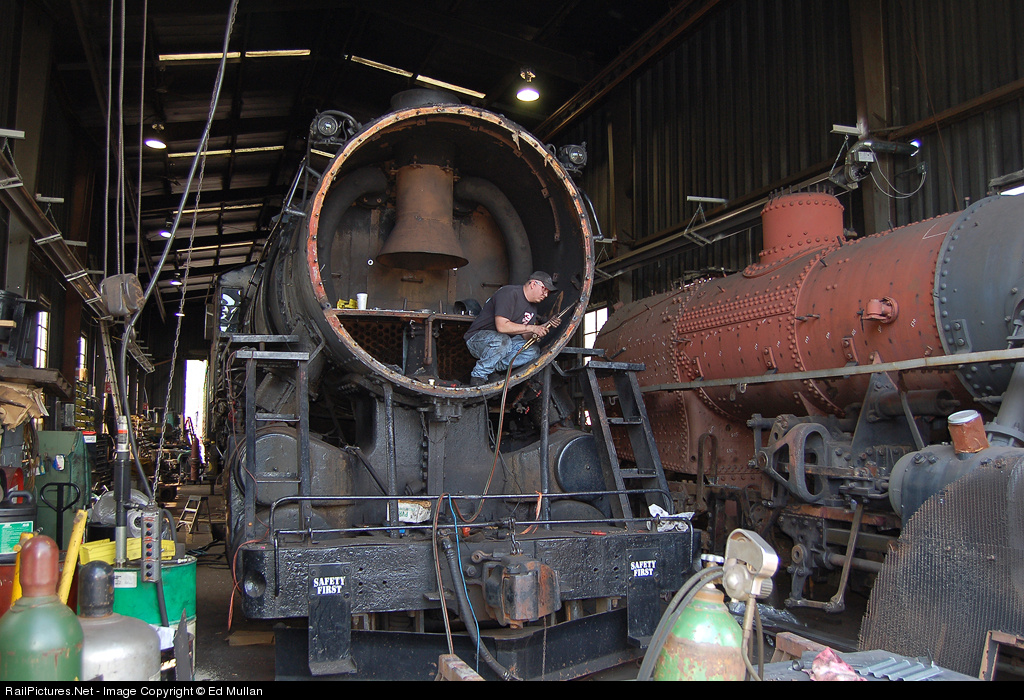 WMSR's Nick Bennett cuts a few stubborn bolts from the smokebox as the fellas get the old girl ready for next week. Nick has also fired and ran the 734. Next to 734 is a 2-6-0 owned by the Everett Railroad of Duncansville, Pa, undergoing resto at the WMSR Shop.