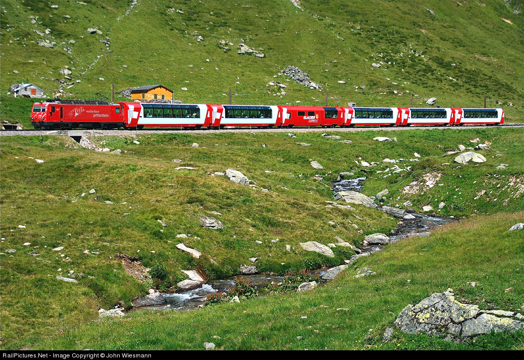 RailPictures.Net Photo: 104 Matterhorn Gotthard Bahn HGE 4/4II at Pass of Oberalp, Switzerland by John Wiesmann