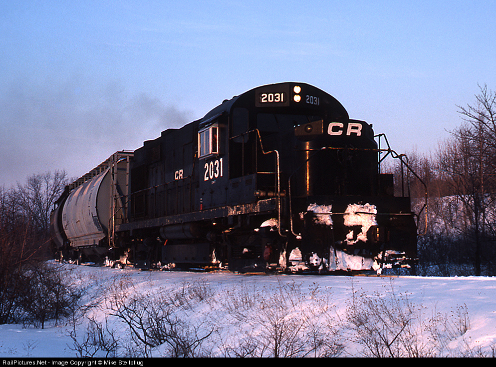 | The CR Lima local is running South on ex LV trackage at Sibley Road, in the last rays of late afternoon winter sun. |