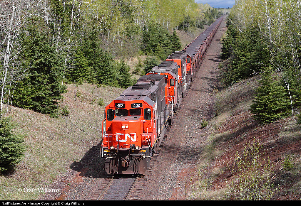 This loaded ore train is working down the 3 mile steep grade into Two Harbors. With the air set and lite use of dynamics, this train will ease down the grade at 20 mph into Two Harbors yard. This train was loaded at Minntac Mine near Mountain Iron, MN, and will be loaded onto a boat at Two Harbors, MN.