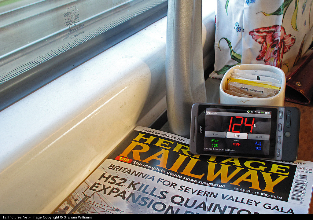 Evidence on my cell phone GPS of the speed of our Virgin Pendolino as seen on the table in First Class on our way from London to Manchester. 180 miles in only 2hr 05mins. Pretty fast huh? Pity the trains are not all that good from a passenger's point of view.