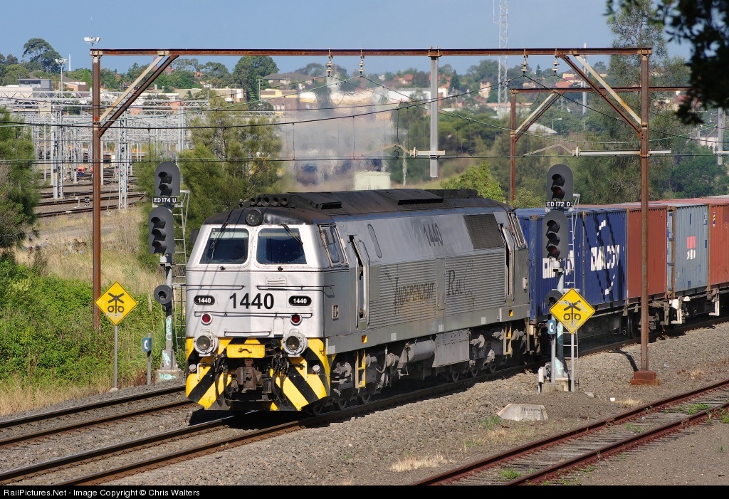 Former DSB Denmark MZ MkIII Class locomotive 1440 leads T251 container shuttle from Port Botany, through Enfield Yard en route to Minto, in south-western Sydney. Locomotive 4703 was bringing up the rear of the train.