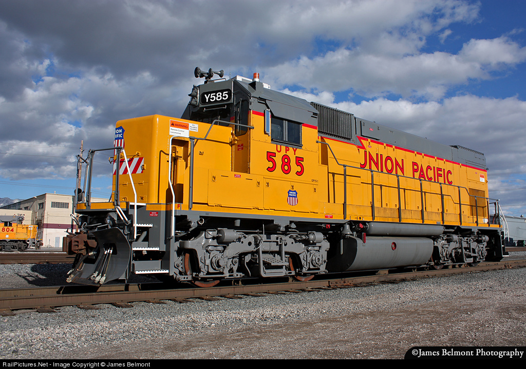 | While driving through downtown Salt Lake City, I spotted this immaculate, freshly painted UP GP15-1. The UPY 585 has been assigned to work the weekday YRO52R 'remote' switch job west of downtown. UPY 585 was built the Missouri Pacific 1585 in December 1976. |