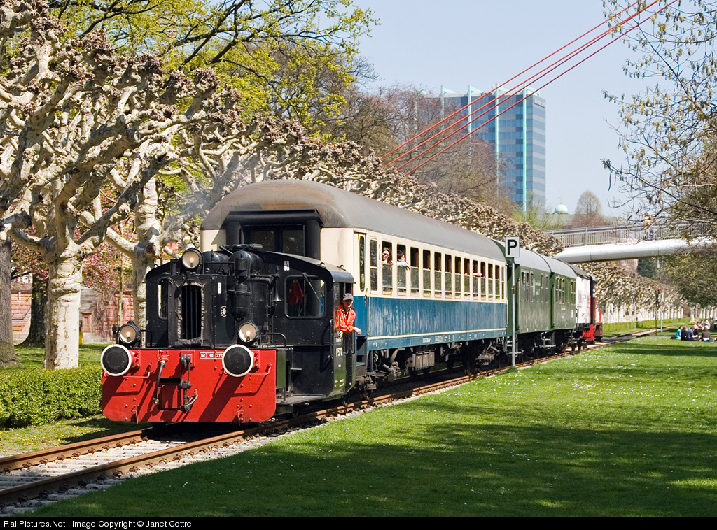 Kö5712 is dwarfed by it's train on one of the Historische Eisenbahn Frankfurt's trips on the Frankfurt Hafen Bahn which runs alongside the river Main. This loco is a former Deutsche Reichsbahn chain-driven shunting tractor, numbered 310 912-1 and based at Eisenach.