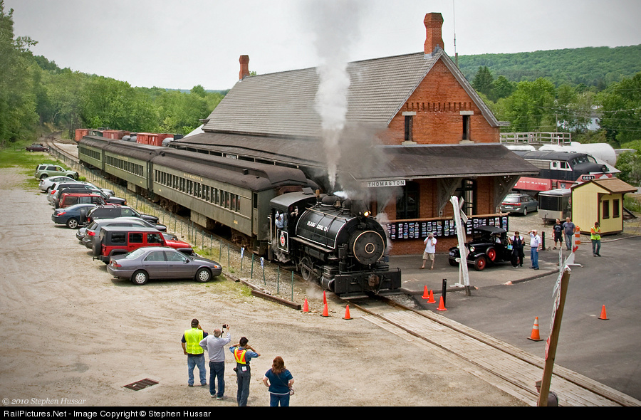 With engineer Bill Sample at the throttle, Flagg Coal No 75 prepares to depart from The Railroad Museum of New England's restored Thomaston Station. More info including schedule can be found at: www.rmne.org