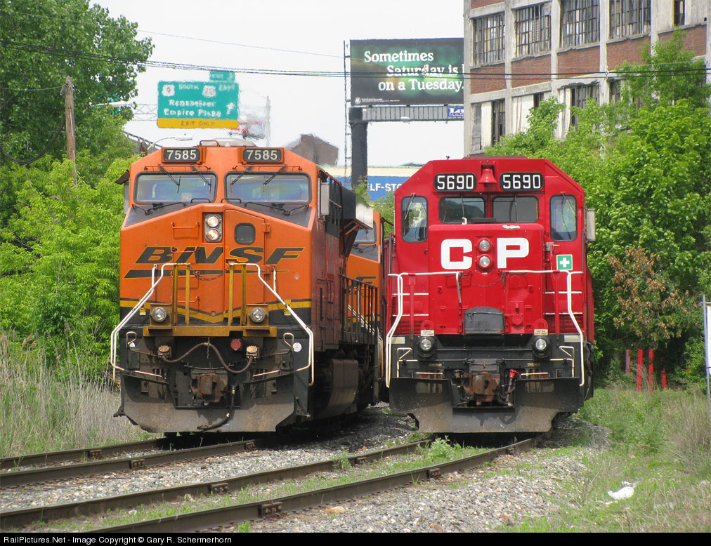 | This matched set of BNSF 'swoosh' ES44DC's (owing horsepower hours back to NS) came up right beside the parked CP #417(outlawed earlier in the morning after coming up the Hudson Line out of NYC) to wait for a slot into Kenwood Yard. A good case study of the D&H in 2010! |