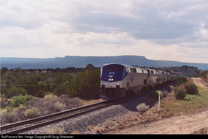 | The eastbound Southwest Chief negotiates the famous and picturesque S-curves between Lamy, N.M., and Las Vegas, N.M. |