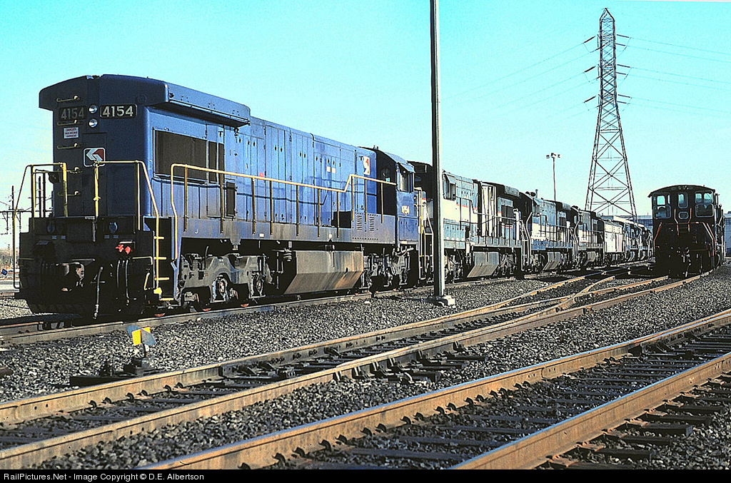 NJT 4154 in SEPTA paint in the deadline with other U-34-CHs at MMC 22NOV93