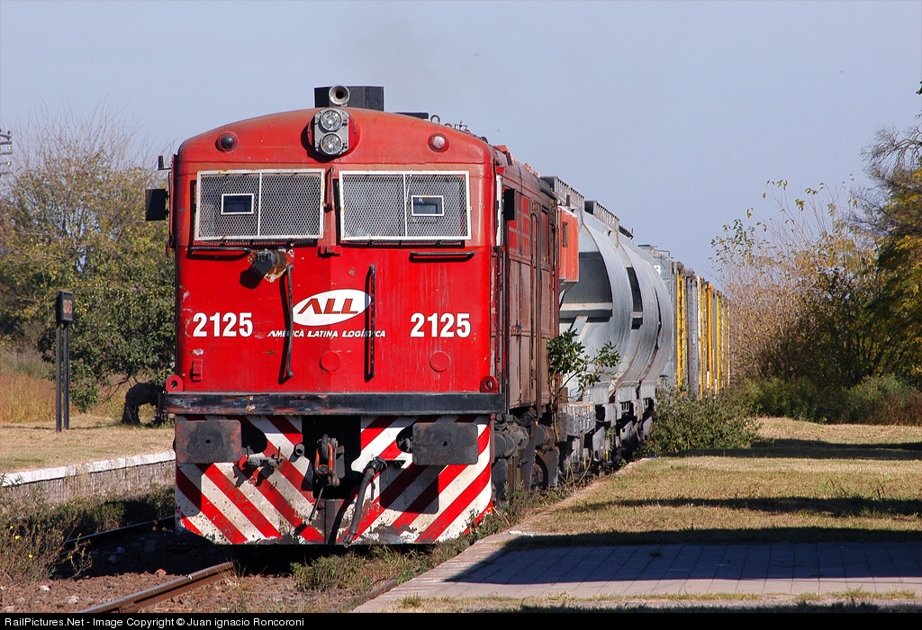 | The veteran locomotive takes the rasta 45 loaded cars destined for Alianza Yard. The train is passing through the town of Manzanares a quiet town near the city of Buenos Aires. |