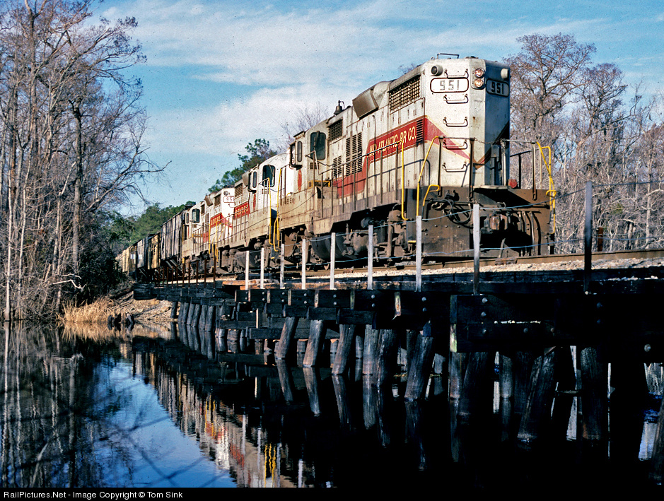 Mid Atlantic Railway #951 leading its train near Conway, SC. This operation is now part of the Carolina Southen Railroad.