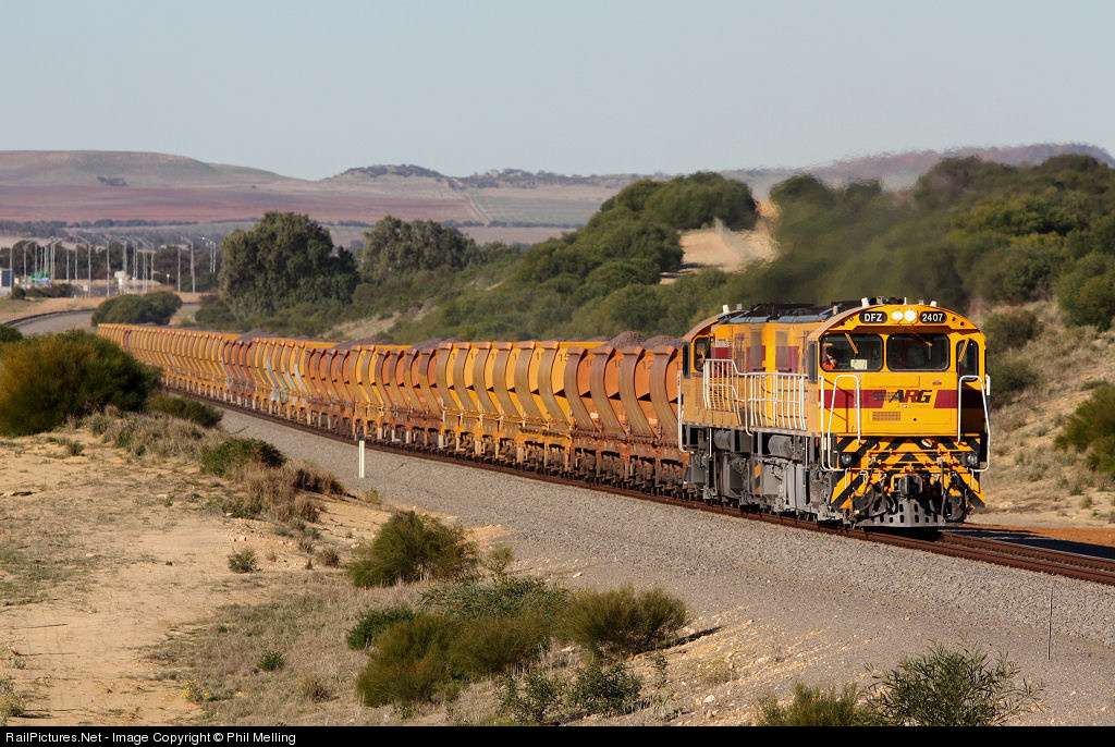 | DFZ2407/ DFZ2406 haul a loaded iron ore up the grade away from Narngulu to Geraldton Port. Both DFZ's have done a complete round trip of around 9000km by road from Western Australia to Queensland & return. |