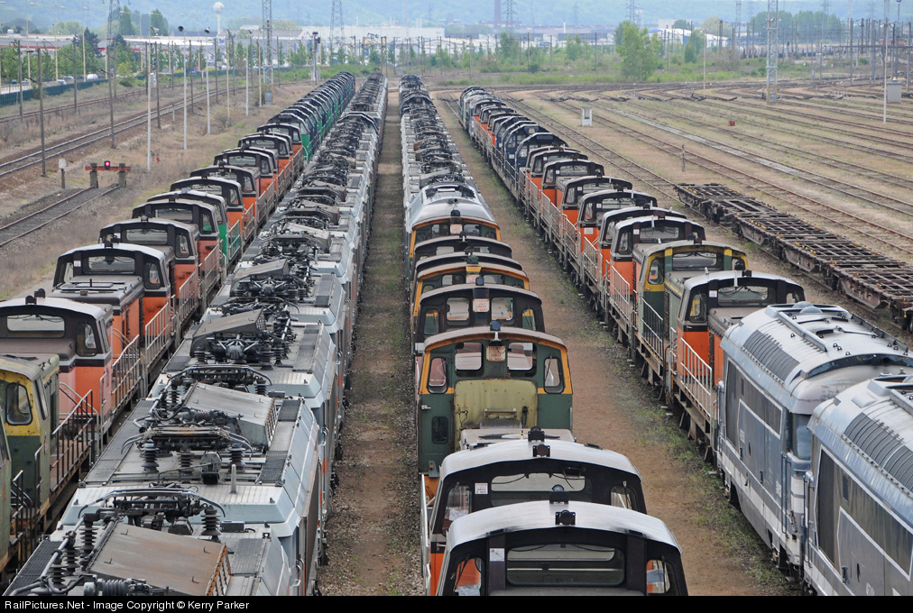 Sotteville Yard contains well over 100 stored locomotives as a consequence of the down turn in traffic, the introduction of competition and the introduction of new diesel locomotives.
