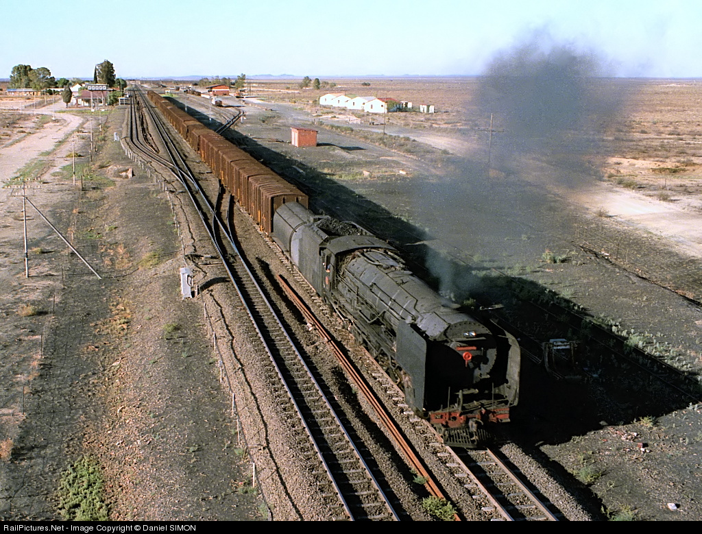 Back in the 1980's most railfans traveling to South Africa to chase steam tried to stop at Kraankuil in the middle of the Karoo and to spend a night in the hotel near the railway station. From the room, it was possible to witness the heavy freight trains running between Kimberley and De Aar, almost all double headed by two 25NC's, storming at full speed through the little station. At that time, this show was repeated approximately every 30 minutes! I did not sleep most of the night, but it was well worth the experience.