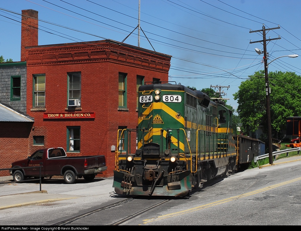 | With granite loadings to commence within a few hours, GMRC GP9R 804 hauls more empty gons to the top of the hill at the Wilson Industrial Park staging yard and is seen rolling through Barre, VT. |
