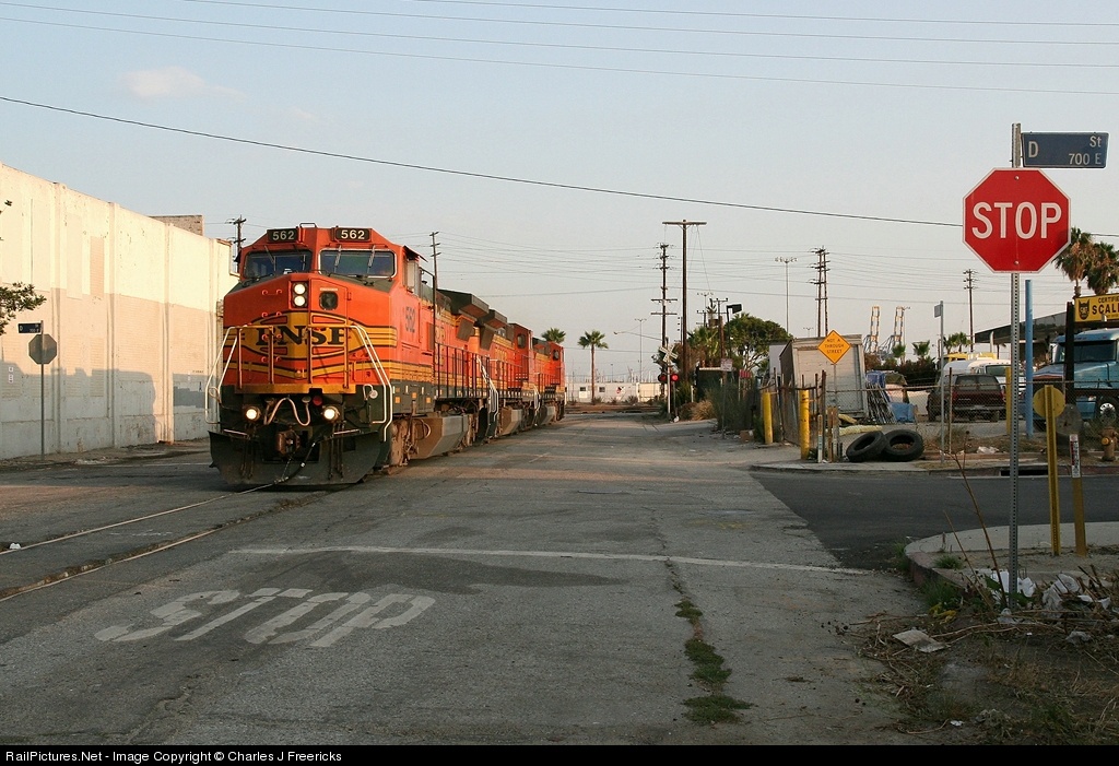 A BNSF transfer job returns light from San Pedro, entering into the street running section of McFarland in Wilmington. Out of frame behind me, two Harbor Patrol police waited to question me regarding my railfanning. They were both kind enough to let me take my shot, and after just a couple questions, they told me to keep shooting. Meanwhile, out of frame to left, two runaway junkyard dogs also watched with interest, so I didn't hang around long.