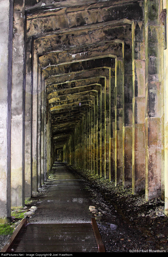 | One can almost hear the long ago din and bustle of the Great Northern Railroad town of Wellington echo off the walls of the first snowshed on the line down to Skykomish. The structure is now part of the U.S. Forest Service's Iron Goat Trail. The original route from Berne to Scenic was by-passed with the construction of the new Cascade tunnel in 1928. On March 1st, 1910 two trains were destroyed and 96 souls were lost at Wellington in the worst avalanche disaster in American history, which is docu-dramatized in the book "Vis Major". |