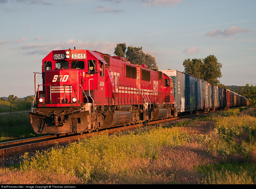 After chasing CP 299 with a SOO SD60 leading, 281 showed up with two SOO SD60s! Unfortunately, every shot opportunity for 40 miles was ruined by clouds until this last bit of light was found before the sun went down. After such a long chase, I have to wonder why I can't give up on getting a photo no matter how many miles it takes? Although not a great composition, I think the light makes this image worth the effort.