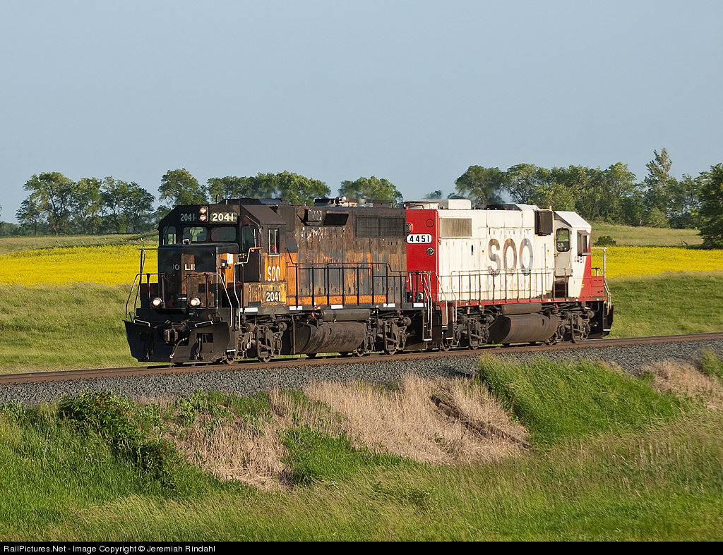 A couple geeps are called on to help the 493, who, for unknown reasons, are stopped just north of Carlos at MP 145. Not far into their trip out of Glenwood, they pass some vibrant fields of yellow. Note the recent removal of the 2041's class lights on the nose.