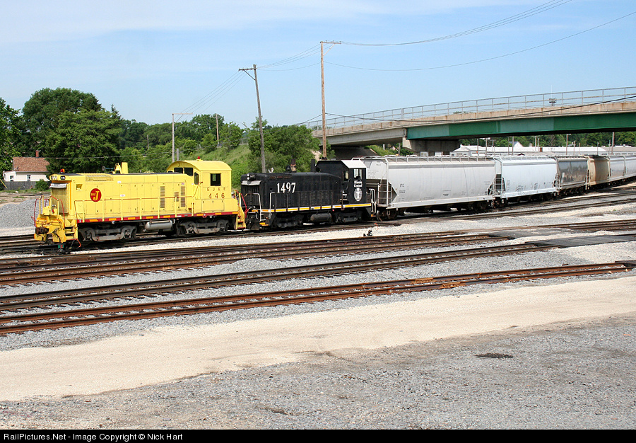 EJ&E 446 and IC 1497 switch out the east end of Joliet Yard.