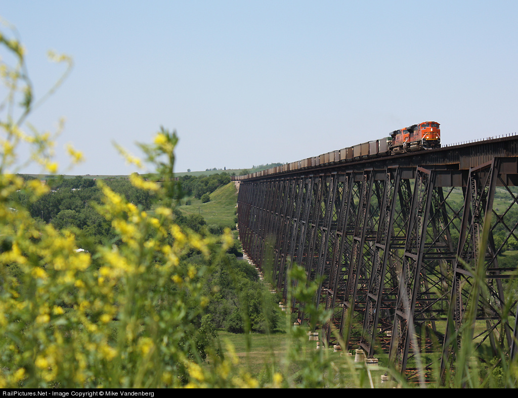 Coal loads cross over the Sheyenne River and the Canadian Pacific Railway on a 4,000' trestle.
