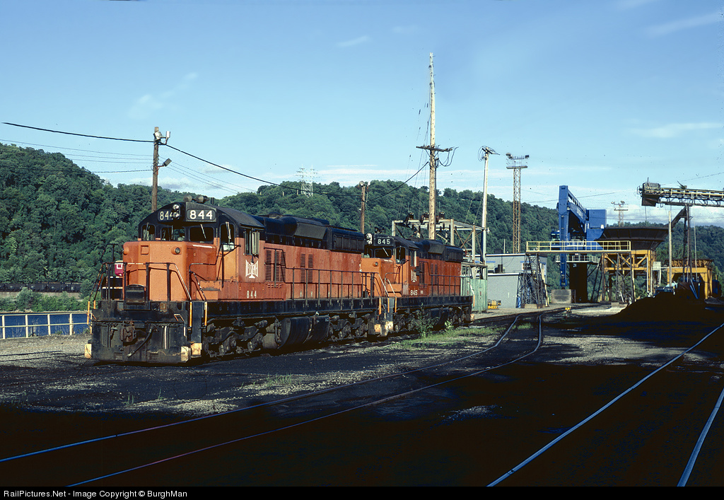 | During most of the 1990's, the URR's Duqusene Coal Dock was switched by a pair of B&LE SD9's. The B&LE 844 and 845 were parked in front of the trainsloader which was a river-to-rail facility. |