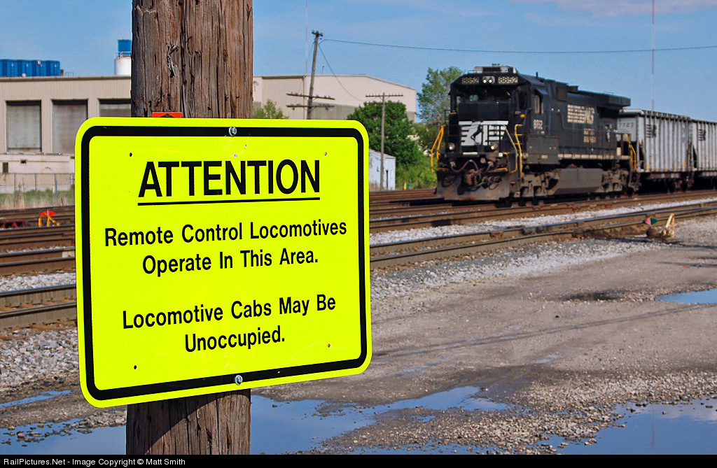 BO22, just got on board Norfolk Southern 8852 at Homestead Yard, as they prepare to pull 50 coal cars east towards Ironville, so they can shove back on the yard lead and deliver the coal to Toledo Edison's Bayshore Power Plant, while the sign warns of empty locomotives.