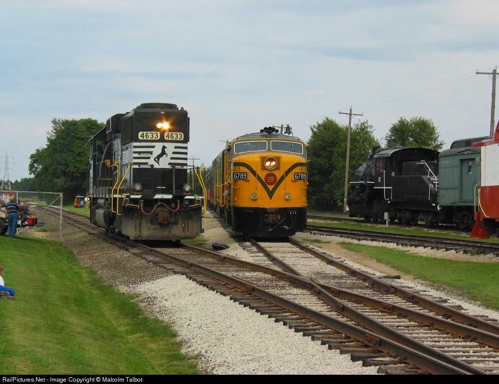 This engine on temporary loan from NS to the Monticello Railway Museum heads into town to picup boxcars as it passes in front of CN 6789.